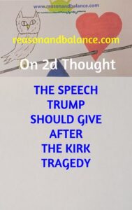 We wanted to be helpful. We wanted to do something to help bring this country together in harmony. So we came up with a fictitious speech that we thought Trump might give to help ease the tensions and pull this country back together. We give that speech in this video: [Please know that some of things suggested are probably unconstitutional, but we are/were more concerned with conciliatory tone and the basic messaging than legal correctness.]